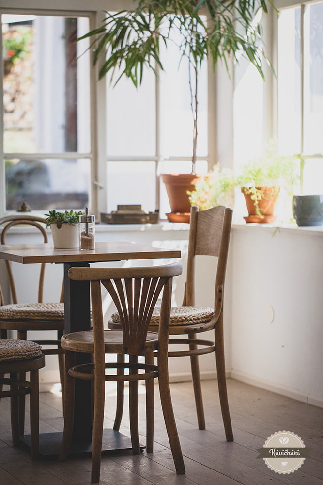 Vilka Kolárovcov má na kaviareň atypický tvar, pripomína skôr byt. Najvýznamnejšie dizajnové prvky vrátane okien, podláh, stropov a dverí sú pôvodné a zreštaurované. Pri tvorbe replík vychádzali z pôvodných metód. Všetko ostatné jemne a s úctou doplnili, aby celý interiér pôsobil harmonicky a kompaktne. Dizajn podriadili funkcii. Nájdete tu niekoľko krásnych solitérov, žiadne veľké hmoty. „Nezbierame jeden ročník produktov tzv. múzejníckym spôsobom.“ Preto sme tu objavili aj funkcionalizmus medzivojnového obdobia. „V meste by ho už pravdepodobne nechceli, bol nemoderný, tak ho dali babke na dedinu.“