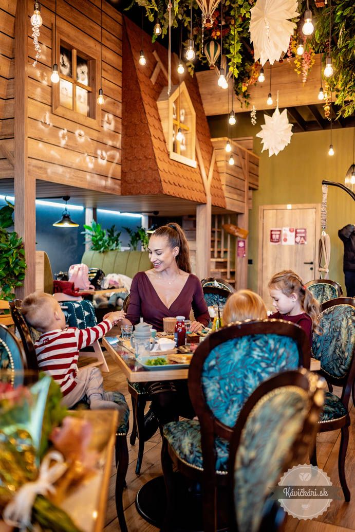 Vytvoriť kreatívny koncept, ktorý bude mať hlavu aj pätu, si vyžaduje viac ako iba nápad. Bez tímu kreatívnych ľudí, ktorí spoločne tomuto priestoru vdýchli život, by to rozhodne nešlo. Počnúc ilustrátorkou, ktorá dala rozprávkovej kreslenej postavičke život, končiac kreatívcami či architektmi, ktorí dali predstavám reálne kontúry. Kaviareň totiž upúta nielen rozprávkovým stropom z rastlín, ktorý pripomína čarovný les, ale aj obrovským detským kútikom.