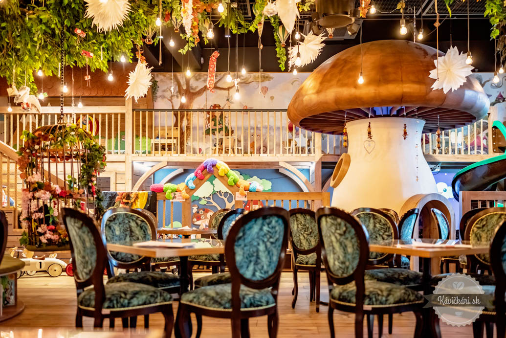 Vytvoriť kreatívny koncept, ktorý bude mať hlavu aj pätu, si vyžaduje viac ako iba nápad. Bez tímu kreatívnych ľudí, ktorí spoločne tomuto priestoru vdýchli život, by to rozhodne nešlo. Počnúc ilustrátorkou, ktorá dala rozprávkovej kreslenej postavičke život, končiac kreatívcami či architektmi, ktorí dali predstavám reálne kontúry. Kaviareň totiž upúta nielen rozprávkovým stropom z rastlín, ktorý pripomína čarovný les, ale aj obrovským detským kútikom.