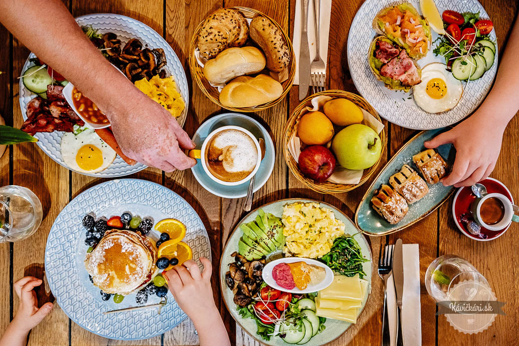 Raňajky si vyberáte z à la carte ponuky, pričom máte na výber sladké i slané verzie. Zabudnite na nudné švédske stoly, na tanieri vám prinesú farebné, chutné a krásne naservírované jedlo. Deti si vybrali sladké lievance s čerstvým ovocím, my sme stavili na slané variácie. Od avokádového chlebíka cez vegetariánsky tanier až po anglické raňajky, všetko bolo skvelé a ťažko si vybrať favorita. Súčasťou raňajok sú aj čerstvá šťava, káva či čaj, misa čerstvého ovocia a niečo sladké na záver.