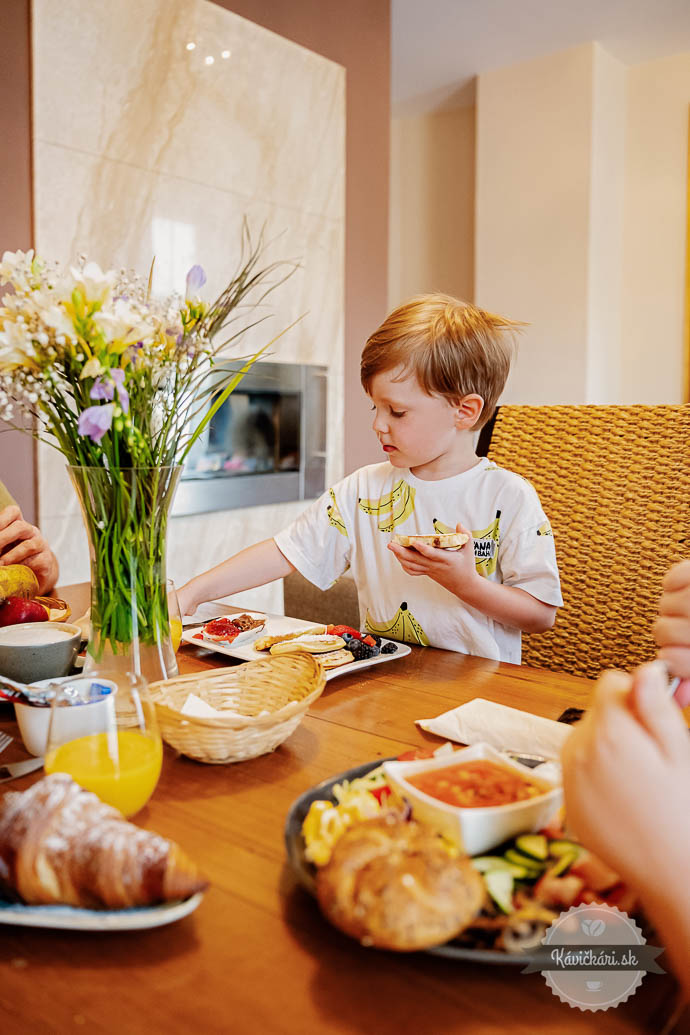 A je len na vás, či si ich necháte naservírovať priamo do postele a začnete deň v pohodlí izby, alebo sa presuniete do útulnej hotelovej kaviarne. My sme si vychutnali raňajky ako v kaviarni, tak aj priamo na izbe. Sedeli sme nerušene v pohodlí apartmánu, otvorili okno, nech dnu prenikne ranný vzduch, a užívali si ten luxus, že nikam nemusíme ísť. Túto možnosť ocení nejeden rodič. Každá voľba má svoje čaro a je skvelé, že si môžete vybrať.