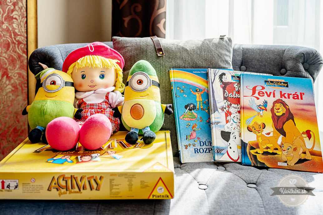 A potom sme zbadali prekvapenie, ktoré ocenili najmä naše deti – mini detský kútik s hračkami. Tie boli prispôsobené veku detí, a tak si tam niečo na zábavu našiel nielen 4-ročný, ale aj 11-ročný syn. Po ceste plnej „kedy tam už budeme?“ to bola malá záchrana. Deti sa pustili do hry a my sme si konečne mohli vyložiť nohy.