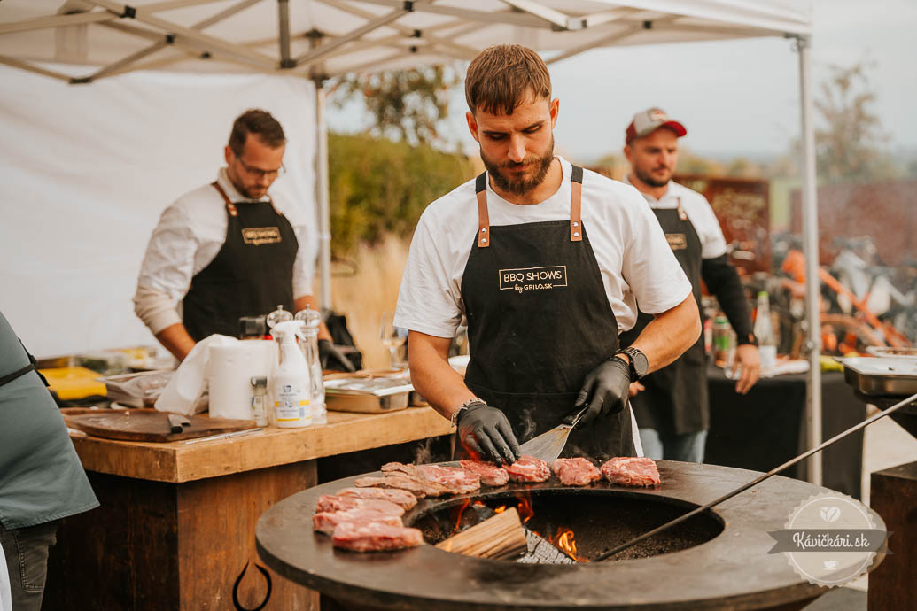 Na grile sa striedali steaky, zelenina aj drobné tapas – všetko s vôňou ohňa, ktorý k jeseni jednoducho patrí. Michalčík a jeho tím zvolili jednoduchý, ale chuťovo výrazný koncept, ktorý ladil s vínami Frtus. A presne to bol kľúč – nič nebolo prehnané, len dokonale vyvážené.