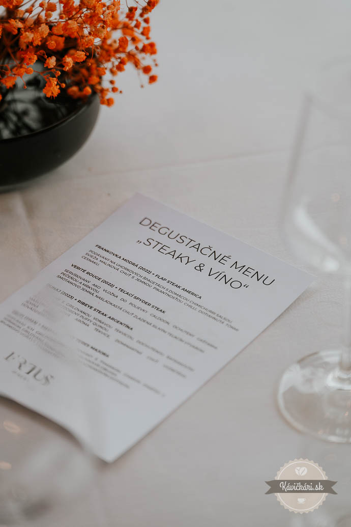 Znie to zvláštne, ale je to tak! Svojim stabilným obchodným partnerom a dlhodobým klientom prichystali krásne posedenie spojené so štvorchodovým degustačným gril menu spojeným s párovaním vlastných vín. Steaky & víno plné sezónnych chutí a brilantnej práce s mäsom by svojou chuťou a predvedením zahanbili nejednu slovenskú reštauráciu. Boli servírované výbornou obsluhou a víno podávané profesionálnymi someliérmi v slávnostne prestretom priestore prispelo k dokonalému zážitku.